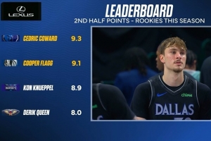 亚历山大打出历史第二高效的场均30+分赛季 仅次于16库里