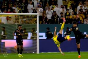 C罗今日代表利雅得胜利打进的精彩倒钩