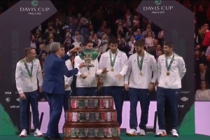 体育资讯11月24日讯 在辛纳、穆塞蒂两位世界前10选手缺阵的情况下,意大利队依旧完成了网球戴维斯杯三连冠的壮举。