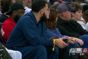 心情不错!德罗赞和威少开拓者主场观战耐克峰会 两人有说有笑
