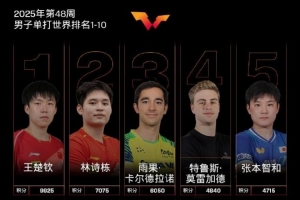 体育资讯11月25日讯 国际乒联更新最新一期男单世界排名,王楚钦、林诗栋前二。