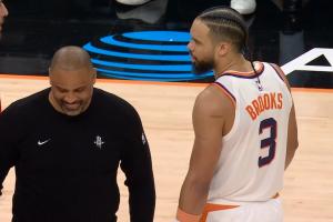 谈及此,乌度卡说道:“我就是跟他开个玩笑,整场比赛我们俩就一直在互相调侃。”