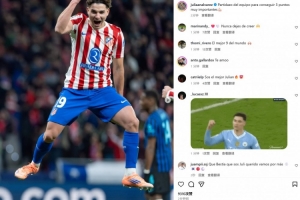 本场比赛阿尔瓦雷斯破门,赛后他也在个人社媒晒出本场庆祝照片,配文写道:“球队拿出很棒的表现,取得重要的三分!”