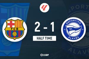上半场补时4分钟,巴萨2-1阿拉维斯。