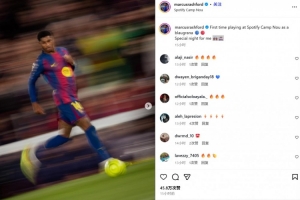 28岁的拉什福德本赛季从曼联租借加盟巴萨,各项赛事18场已贡献6球8助攻。