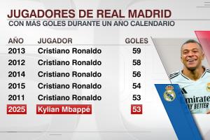 姆巴佩本场比赛点射破门,今年姆巴佩已经代表皇马攻入了53球。追平了2011年的C罗。