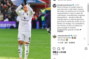 利桑德罗在社交媒体上写道:“时隔许久终于能重返球场,做我最热爱的事情,而有什么能比用一场至关重要的胜利来宣告回归更完美的呢?”