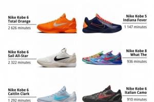 排名第一的是Kobe 6 Protro “Total Orange”配色,第二的是Kobe 6 Protro “ASG”,第三则是凯特琳·克拉克的PE配色Kobe 6 Protro。