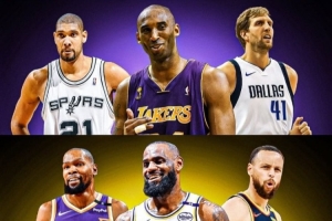 “科比-布莱恩特、蒂姆-邓肯和德克-诺维茨基则用无与伦比的技术、稳定性和殿堂级的传奇生涯,扛起了21世纪00年代的联盟大旗。