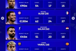体育资讯12月5日讯《转会市场》评选2025年最佳右边锋,并列出了4人候选同时对比了他们的数据: