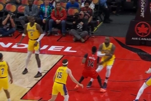 GIF-詹姆斯阻挡 湖人挑战失败