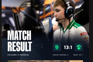 手枪局Imperial进攻A区被接住,只能被迫钢枪!这一分TeSeS白给,但是B小道的kyousuke再一次发挥数值,一波四杀结束比赛!Falcons以13-1的比分碾压击败对手,晋级到了2-1组!