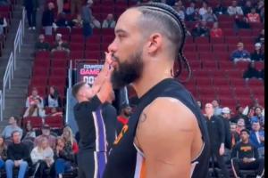 GIF-狄龙赛前目不转睛紧盯火箭方向