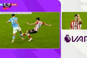 体育资讯12月07日讯 英超第15轮,曼城对阵桑德兰。补时阶段,奥尼恩蹬踏努内斯,裁判一开始出示黄牌。