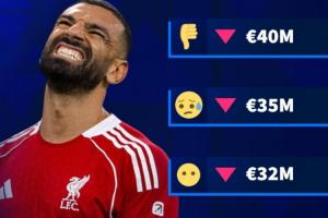 在德转的预告中,给出了萨拉赫身价更新的四个选项:4000万欧、3500万欧、3200万欧、3000万欧。而目前萨拉赫的德转身价为4500万欧元,这也意味着萨拉赫的身价一定会出现下跌。