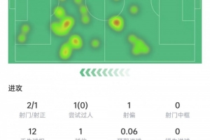 多库数据:两射1正进1球,1次关键传球,1次成功过人,获评7.8分