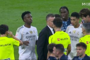 马卡表示,终场哨响后,半数皇马球员直接向更衣室,贝林厄姆找裁判交涉,有趣的是,最冷静的居然是维尼修斯,他搂住贝林的腰将他拉开,避免更多球员被罚下。