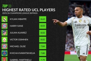体育资讯12月11日讯 WhoScored统计了本赛季球员在欧冠比赛中的场均评分,并列出评分最高榜单,姆巴佩8.63分居首,凯恩8.03分次席。