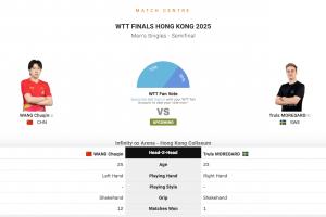 体育资讯12月14日讯 WTT总决赛男单半决赛,王楚钦vs莫雷加德。官方消息,王楚钦因伤退赛,莫雷加德晋级WTT总决赛男单决赛,将战张本智和。