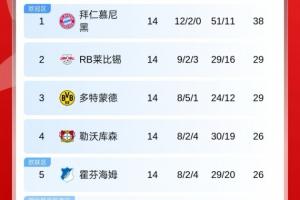 体育资讯12月15日讯 德甲第14轮基本结束,拜仁2-2美因茨仍扩大领先优势,现9分领跑,此前第2的莱比锡本轮1-3不敌柏林联合,第3的多特1-1憾平弗赖堡,最新积分榜如下: