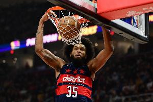 上半场,奇才中锋巴格利高效发挥,出场13分钟7投5中,罚球4中1拿到11分7篮板1盖帽,正负值+6。