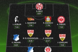 后卫:卢卡斯·库布勒(弗赖堡,7.61分)、利奥波德·奎菲尔德(柏林联合,7.96分)、安德里希(勒沃库森,7.78分)、亚瑟·泰特(法兰克福,7.23分)