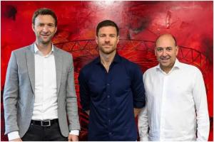 图左至右:勒沃库森总监罗尔费斯,阿隆索,CEO卡罗