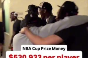 NBA杯冠军球队每名球员可获得53.0933万美元奖金。