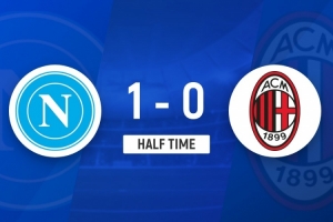 体育资讯12月19日讯 意大利超级杯半决赛,那不勒斯对阵AC米兰,比赛在沙特国王大学体育场进球。上半场,奇克、萨勒马科尔斯造险,埃尔马斯、恩昆库失良机,内雷斯破门。半场战罢,米兰0-1那不勒斯。