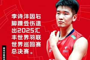 “李诗沣因右脚踝受伤退出2025汇丰世界羽联世界巡回赛总决赛。随着他的退赛,其所在小组的相关比赛结果将被视为无效。 祝愿李诗沣早日康复❤️🩹🙏 ”
