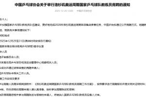 体育资讯12月20日讯 中国乒协官方今日发布通知,为备战2028年洛杉矶奥运周期,拟通过公开竞聘方式组建新一届国乒教练组。