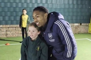 斯凯利、马杜埃凯造访圣约翰海布里谷小学,他们回答了孩子们的问题,分享自己一路走来的经验,并参与了女孩们的课后活动,阿森纳官方社媒晒出视频。