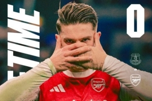 体育资讯12月21日讯 本轮英超焦点战,阿森纳客场半场1-0领先埃弗顿。