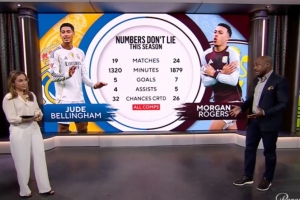 里奥·科克说:说实话,这两人都是顶级球员。从数据上看,确实非常相近。当然,不同之处在于人们会说贝林厄姆效力的是皇家马德里这样的一家顶级豪门,而摩根·罗杰斯是在阿斯顿维拉证明自己。