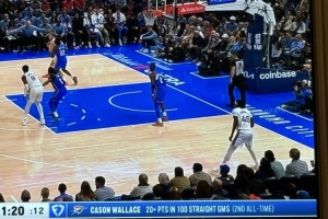 转播方搞出乌龙:卡森·华莱士连续100场比赛得分20+,历史第二多。