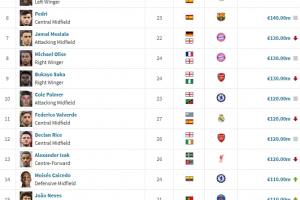 体育资讯12月23日讯 今日德转更新意甲球员身价,至此五大联赛都完成了这个周期的身价更新,让我们来看看目前足坛的亿元先生们。