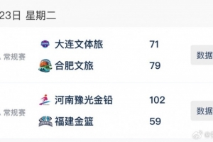 合肥文旅79-71大连文体旅,约翰逊独得23分7篮板6助攻,纳雷德18分8篮板,卡耶10分。大连女篮库珀23分,李雨萌16分,付金秋11分6篮板。