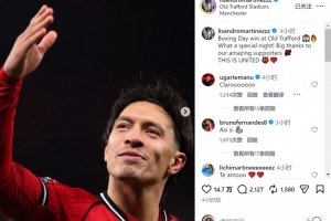 利桑德罗晒出自己的照片,并写道:“节礼日在老特拉福德取胜,多么特别的夜晚!衷心感谢我们了不起的球迷们!这就是曼联!”