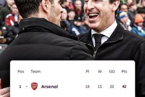 下一轮英超比赛12月31日凌晨,英超榜首阿森纳将在主场迎战阿斯顿维拉,目前两队之间相差3分。