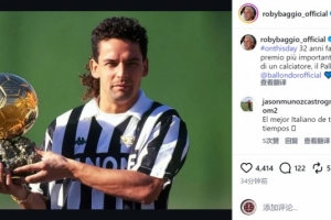 体育资讯12月28日讯 意大利足坛名宿巴乔更新社媒动态,回顾32年前的今天赢得金球奖。