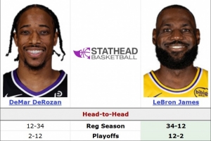 据统计,詹姆斯常规赛生涯面对德罗赞战绩来到35胜12负,季后赛为12胜2负。