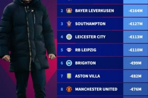 体育资讯12月30日讯 2025年即将结束,德国转会市场盘点了这一年俱乐部身价下跌情况,皇家社会下跌1.77亿欧居首,曼联下跌7600万欧第8。