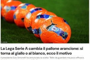 意甲联盟被迫更换从联赛第12轮起使用的、曾引发讨论的荧光橙色足球,这一更换将在2026年初及下半赛季开始之际进行,但不会立即实施,该决定是在众多色盲球迷投诉无法在球场中辨识足球后作出的。