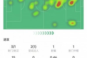 若昂·佩德罗数据:3射零正,无过人和关键传球,仅获评6.6分
