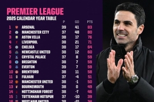 体育资讯12月31日讯 2025年英超联赛已经落下帷幕,以下是2025年全年度的英超积分排行榜以及净胜球情况。
