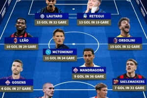 体育资讯1月3日讯 德国转会市场列出了2025年意甲进球最多阵容,劳塔罗、雷特吉、莱奥在列。