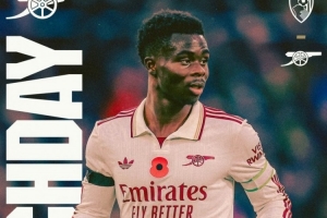 阿森纳官方社媒发布了为此役制作的海报,队内边锋萨卡单人出镜。