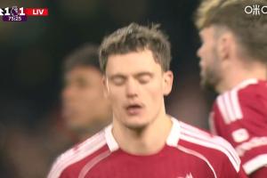半场-诺丁汉森林1-1阿斯顿维拉 穆里略自摆乌龙内科爆射扳平