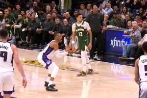 这球是真滴酷!奥比·托平反击胯下单臂暴扣!但先超时了!