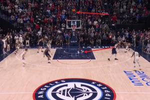 GIF-快船最后一防 小卡疑似防守三秒违例了